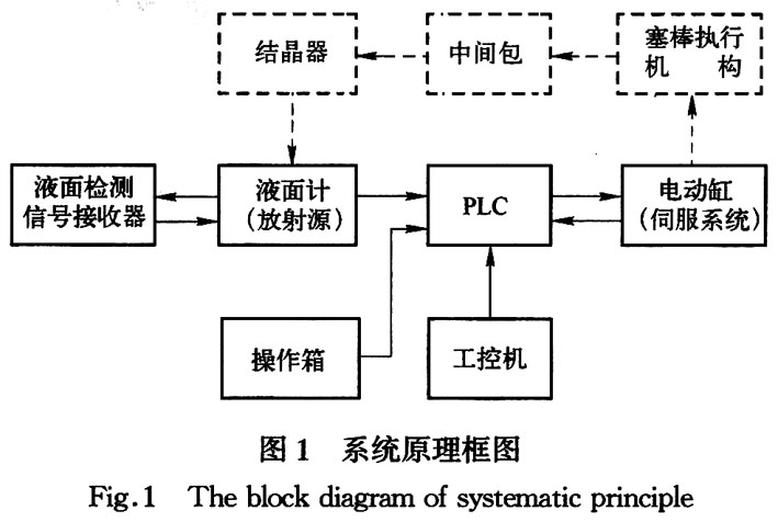其原理为将钢水液面检测装置检测到的结晶器液面波动信号由PLC处理后,转换为驱动电动缸的数字信号,通过控制中间包塞棒的起升调节中间包水口开度,从而实现自动控制拉坯或浇钢速度,并且使钢水液面稳定的保持在预定的高度上,因此可提高连铸机作业率,保持钢锭质量,并且减轻浇铸工人的劳动强度。