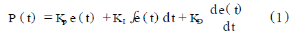 P ( t)为输出, Kp为比例单元, KI为积分单元,KD 为微分单元, e( t) 为时间函数。