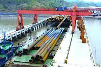 4月18日,宁波杭钢富春管业有限公司首批钢管桩落驳交付用户。