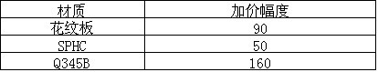 具体价格如下:1、材质加价:2、以上为非协议户、含税、现款、过磅价格,执行日期自2011年12月起