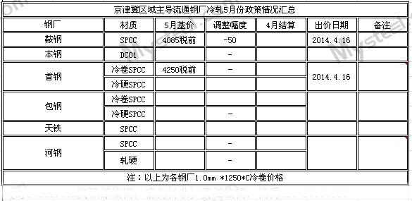 京津冀区域主导流通钢厂冷轧5月份政策情况汇总