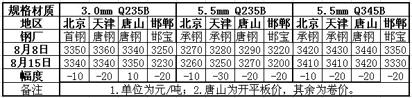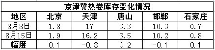 京津冀热轧板卷一周回顾(8.8-8.15)