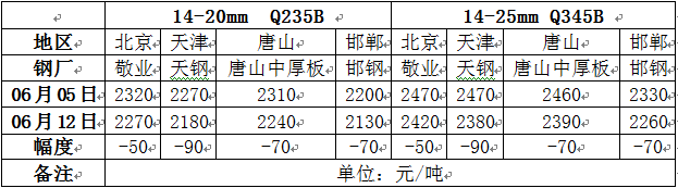 概述:本周京津冀中板价格跌速加快,随着钢厂锁价下跌,市场价格一再刷新新低,市场看空心态蔓延,具体情况如下。一、价格方面二、钢厂方面本周(6月6日—6月12日),京津冀地区中厚板生产企…