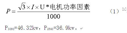 改造前,TDSS3090椭圆等厚振动筛电机功率90kw,平均电流120A,电压380V,电机功率因数查表为0.612,TDSS2560椭圆等厚振动筛电机功率75kw,平均电流90A,电压380V,电机功率因数查表为0.623,将上述值带入由公式(1)可求得TDSS3090、TDSS2560椭圆等厚振动筛功率为