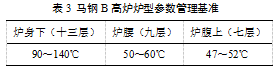 (5)目标值管理不严格。对关键参数包括送风参数、炉型参数未建立严格的目标值管理模式,不能在目标值逐步偏离的情况下及时予以控制,导致调整抓不住时机。