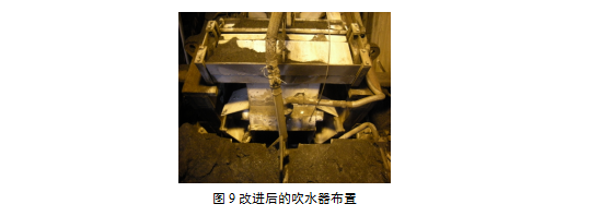 生产实践表明,吹水器的合理布置对于二冷的均匀性就显得极其重要,炼钢厂技术人员在原设计基础上对吹水器进行改造,目前基本可保证吹水器工作状态良好,无积水等现象,图9为改进后的吹水器布置。