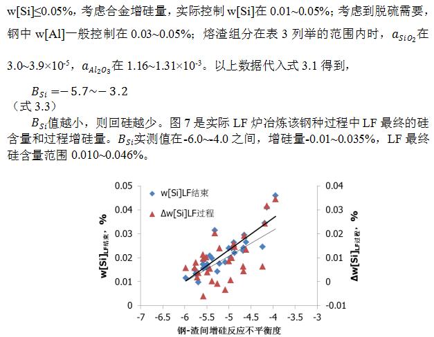 3)控制钢-渣之间反应不平衡是控制增硅的关键,钢-渣间增硅反应不平衡度应控制在-6.0到-4.0之间;