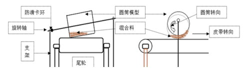 (1)为了模拟圆筒混匀效果制作了一个简易的φ300mm×400长圆桶模型,通过桶底与运行1.6m/s(2×180㎡烧结机一混圆筒筒壁速1.55m/s)的物料运行皮带接触带动圆桶模型转动达到模拟圆筒工作的效果,圆筒模型如图9所示。
