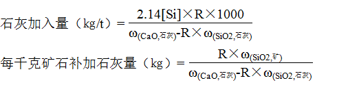炉渣总量/炉=石灰加入量+白云石×(1-白云石中烧碱含量%)+矿石加入量×(1-矿石中全铁含量%)+装入量×入炉金属料硅含量%×1000×60÷28