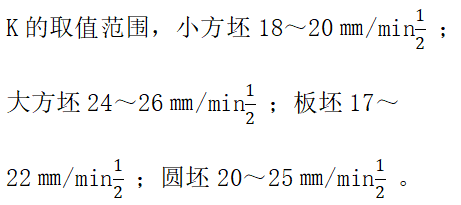 一般情况下小方坯的坯壳厚度必须大于8~12mm,板坯的坯壳厚度必须大于12~15mm。