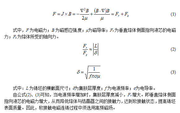 (1)为了达到软接触状态,在软接触电磁连铸过程中须选用高频磁场。