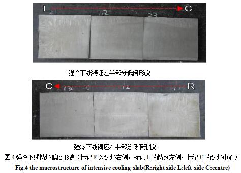 Table.4 the small equiaxed grains thickness in the intensive cooling slab surface(11→21:L→R)