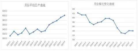 通过以上强化措施,炉况保持了稳定顺行,产量及指标均取得了明显进步。其中2019年3月份平均日产量4008.6t,焦比338.28kg/t.fe,煤比141.82kg/t.fe,燃料比509.81kg/t。