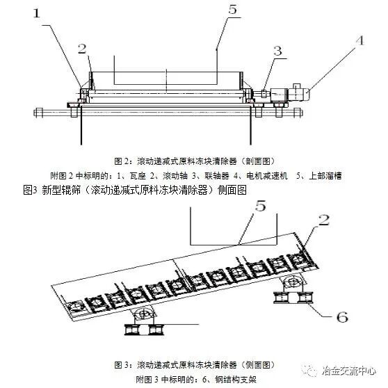 参照G7A尾部辊筛改造使用效果,2018年底对其余四个振动筛进行改造,全部更换为新型辊筛,彻底杜绝冻块原料入仓,杜绝了圆盘因大块料堵塞现象造成的单品种料配比波动,直供铁混料质量得到保障。此新型辊筛作为清除原料冻块技术已通过国家实用新型专利申请(图2、3)。