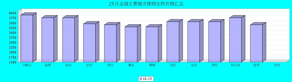 炼钢生铁马鞍山淄博临沂武安唐山襄汾翼城安阳龙岩贵阳哈尔滨昆明均价L8-10390037503750345034003300330035503550355037503400-涨跌-------------产地安徽山东山东河北河北山西山西河南福建贵…