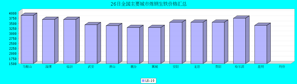| 炼钢生铁 | 马鞍山 | 淄博 | 临沂 | 武安 | 唐山 | 襄汾 | 翼城 | 安阳 | 龙岩 | 贵阳 | 哈尔滨 | 昆明 | 均价 |