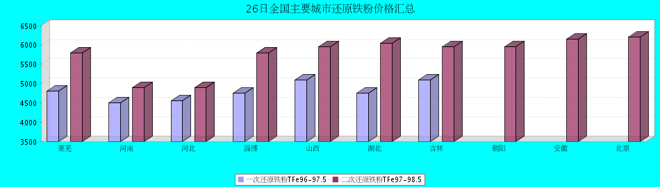 | 一次还原铁粉TFe96-97.5 | 4800 | 4500 | 4550 | 4750 | 5100 | 4750 | 5100 | - | - | - |