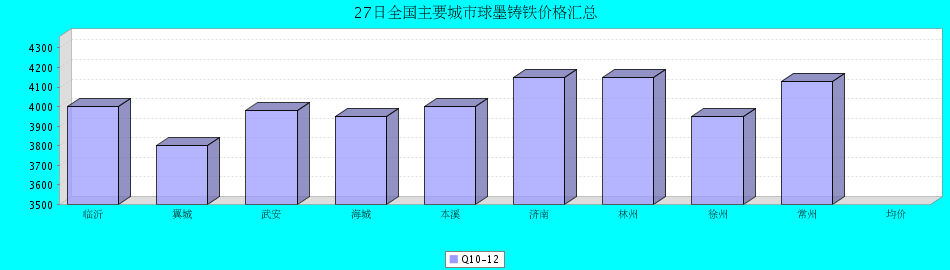 球墨铸铁临沂翼城武安海城本溪济南林州徐州常州均价Q10-12400038003980395040004150415039504130-涨跌----------产地山东山西武安辽宁辽宁山东河南江苏江苏-