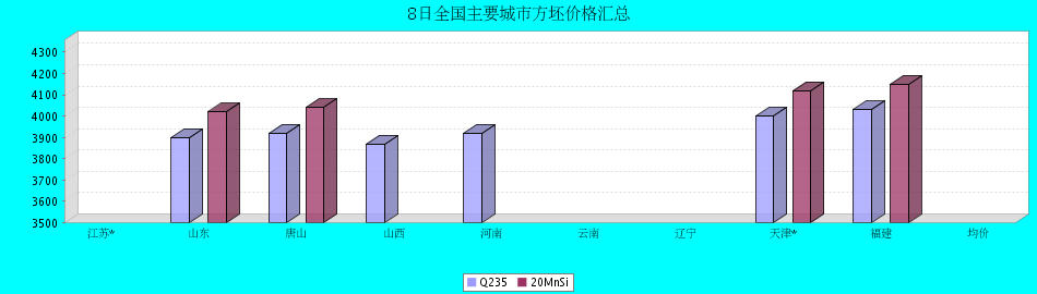 | 方坯 | 江苏* | 山东 | 唐山 | 山西 | 河南 | 云南 | 辽宁 | 天津* | 福建 | 均价 |