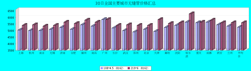 | 108*4.5(8162) | 5050 | 5000 | 5000 | 5100 | 5250 | 5100 | 5450 | 5350 | 5850 | 5200 | 5000 | 4900 | 5100 | 4950 | 5250 | 5400 | 5650 | 5600 | 5650 | 5450 | 5350 | 5262 |