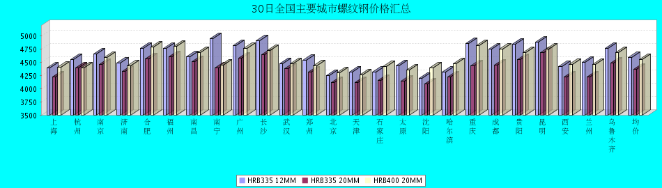 30日全国25个主要市场螺纹钢平均价格下跌。