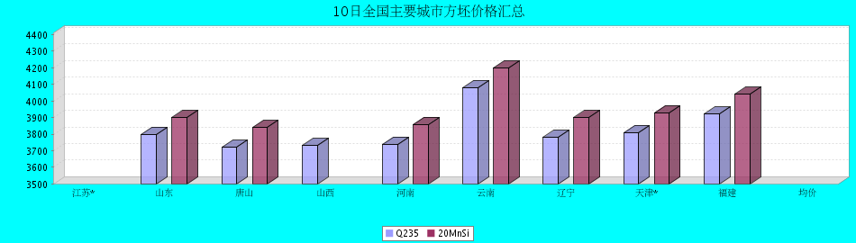 | 方坯 | 江苏* | 山东 | 唐山 | 山西 | 河南 | 云南 | 辽宁 | 天津* | 福建 | 均价 |