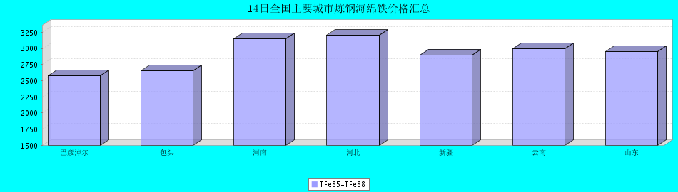 炼钢海绵铁巴彦淖尔包头河南河北新疆云南山东TFe85-TFe882575265031503200290030002950涨跌-------产地内蒙古包头邢台登封鄯善昆明济南详情请参照炼钢海绵铁各地区行情 以上均为出厂含税现款价