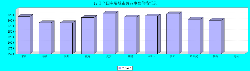 | 铸造生铁 | 常州 | 徐州 | 临沂 | 威海 | 武安 | 翼城 | 林州* | 贵阳 | 哈尔滨 | 鞍山 | 均价 |