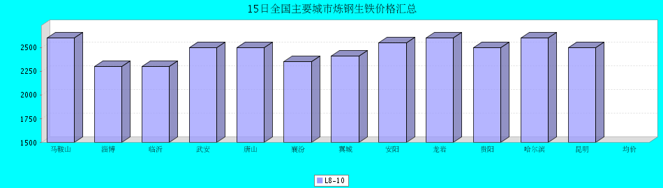 | 炼钢生铁 | 马鞍山 | 淄博 | 临沂 | 武安 | 唐山 | 襄汾 | 翼城 | 安阳 | 龙岩 | 贵阳 | 哈尔滨 | 昆明 | 均价 |