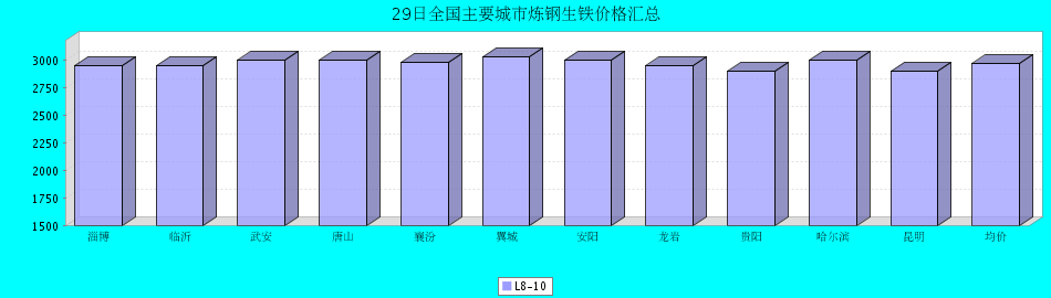 炼钢生铁淄博临沂武安唐山襄汾翼城安阳龙岩贵阳哈尔滨昆明均价L8-10295029503000300029803030300029502900300029002969涨跌-50-50-30-30-20-200-500-300-26产地山东山东河北河北山西山西河南…