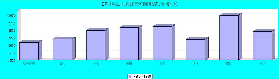炼钢海绵铁巴彦淖尔包头河北新疆云南山东湛江均价TFe85-TFe8821002210250026002630220030002463涨跌0000000-产地内蒙古包头邢台鄯善昆明济南湛江-
