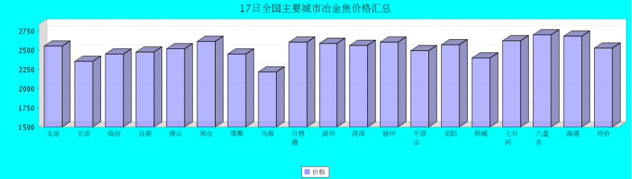 | 价格 | 2550 | 2350 | 2450 | 2470 | 2515 | 2610 | 2450 | 2215 | 2600 | 2590 | 2560 | 2600 | 2495 | 2570 | 2400 | 2620 | 2700 | 2680 | 2524 |