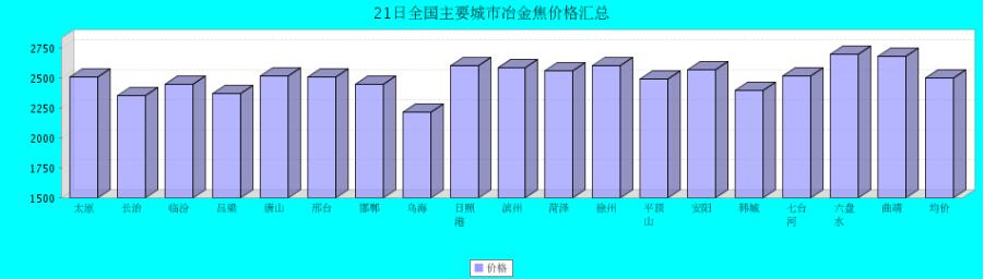 21日全国主要城市冶金焦价格汇总