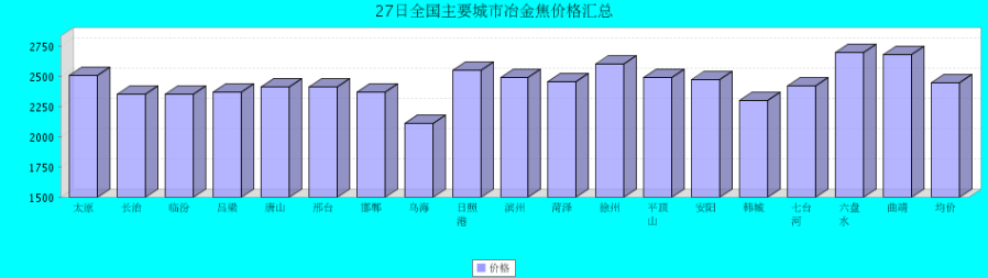 27日全国主要城市冶金焦价格汇总