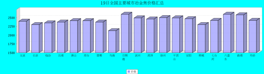 | 价格 | 2400 | 2300 | 2350 | 2370 | 2415 | 2410 | 2370 | 2125 | 2600 | 2490 | 2460 | 2500 | 2495 | 2470 | 2300 | 2420 | 2600 | 2580 | 2425 |