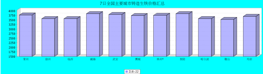 | 铸造生铁 | 常州 | 徐州 | 临沂 | 威海 | 武安 | 翼城 | 林州* | 贵阳 | 哈尔滨 | 鞍山 | 均价 |