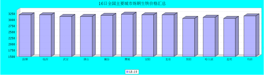 | 炼钢生铁 | 淄博 | 临沂 | 武安 | 唐山 | 襄汾 | 翼城 | 安阳 | 龙岩 | 贵阳 | 哈尔滨 | 昆明 | 均价 |