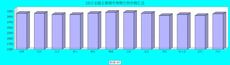 炼钢生铁淄博临沂武安唐山襄汾翼城安阳龙岩贵阳哈尔滨昆明均价L8-10315031503100310031503200320031503050310030503127涨跌000000000000产地山东山东河北河北山西山西河南福建贵州黑龙江云南-