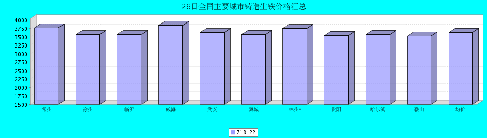 | 铸造生铁 | 常州 | 徐州 | 临沂 | 威海 | 武安 | 翼城 | 林州* | 贵阳 | 哈尔滨 | 鞍山 | 均价 |