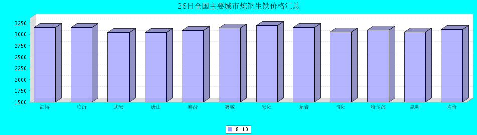 | 炼钢生铁 | 淄博 | 临沂 | 武安 | 唐山 | 襄汾 | 翼城 | 安阳 | 龙岩 | 贵阳 | 哈尔滨 | 昆明 | 均价 |