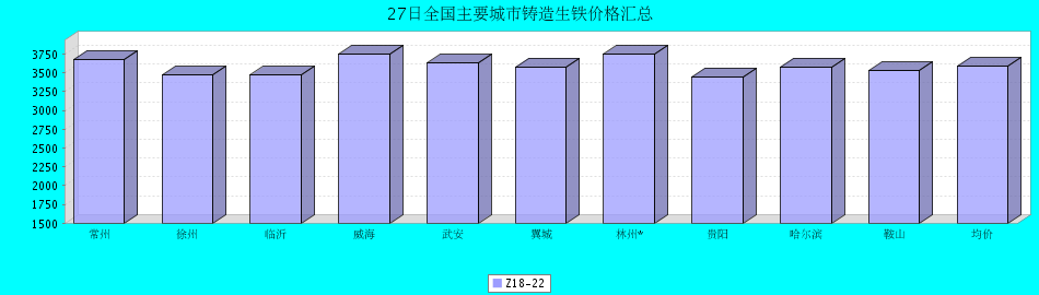 | 铸造生铁 | 常州 | 徐州 | 临沂 | 威海 | 武安 | 翼城 | 林州* | 贵阳 | 哈尔滨 | 鞍山 | 均价 |