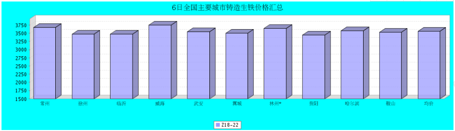 | 铸造生铁 | 常州 | 徐州 | 临沂 | 威海 | 武安 | 翼城 | 林州* | 贵阳 | 哈尔滨 | 鞍山 | 均价 |