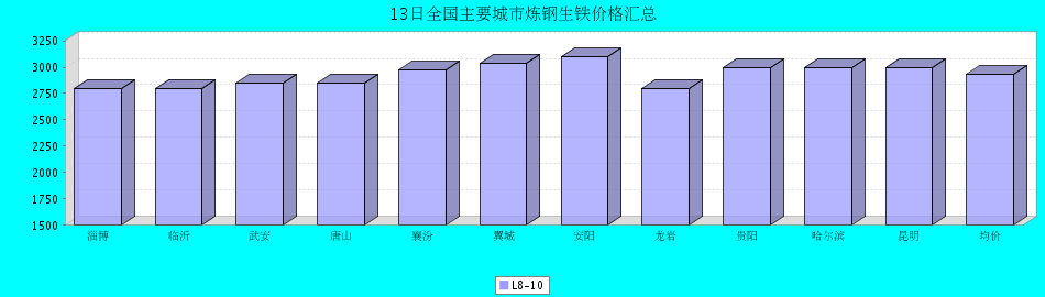 炼钢生铁淄博临沂武安唐山襄汾翼城安阳龙岩贵阳哈尔滨昆明均价L8-10280028002850285029703040310028003000300030002928涨跌000000000000产地山东山东河北河北山西山西河南福建贵州黑龙江云南-