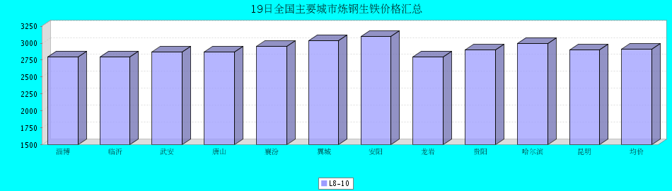 | 炼钢生铁 | 淄博 | 临沂 | 武安 | 唐山 | 襄汾 | 翼城 | 安阳 | 龙岩 | 贵阳 | 哈尔滨 | 昆明 | 均价 |