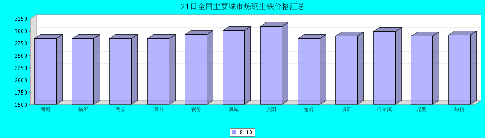 炼钢生铁淄博临沂武安唐山襄汾翼城安阳龙岩贵阳哈尔滨昆明均价L8-10285028502850285029303020310028502900300029002918涨跌+50+50-20-20-20-200+50000+6产地山东山东河北河北山西山西河南福建…
