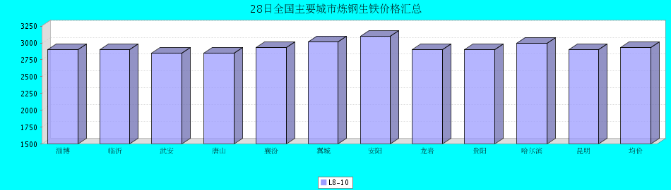 炼钢生铁淄博临沂武安唐山襄汾翼城安阳龙岩贵阳哈尔滨昆明均价L8-10290029002850285029303020310029002900300029002932涨跌000000000000产地山东山东河北河北山西山西河南福建贵州黑龙江云南-
