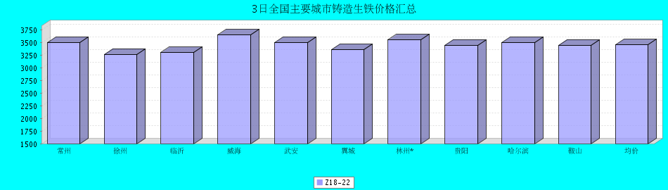 铸造生铁常州徐州临沂威海武安翼城林州*贵阳哈尔滨鞍山均价Z18-2235003270330036503500336035503450350034503453涨跌00000000000产地山西江苏山东山东河北山西河南贵州黑龙江辽宁-