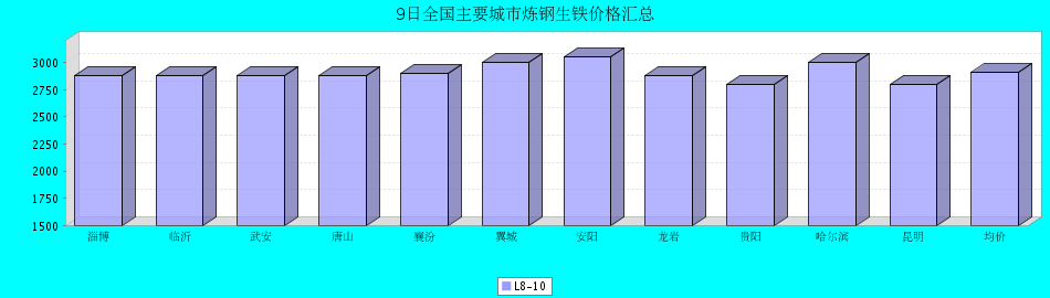 炼钢生铁淄博临沂武安唐山襄汾翼城安阳龙岩贵阳哈尔滨昆明均价L8-10288028802880288029003000305028802800300028002905涨跌00+50+500000000+10产地山东山东河北河北山西山西河南福建贵州黑龙…