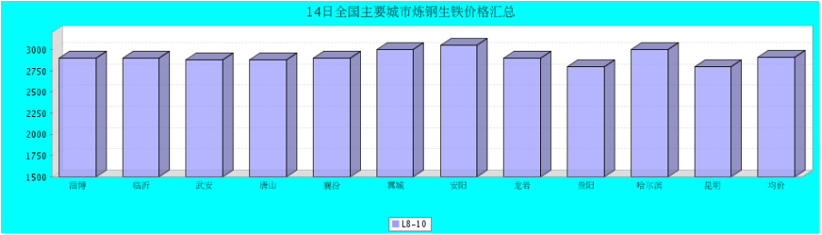 炼钢生铁淄博临沂武安唐山襄汾翼城安阳龙岩贵阳哈尔滨昆明均价L8-10290029002880288029003000305029002800300028002910涨跌+20+2000000+20000+5产地山东山东河北河北山西山西河南福建贵州黑龙…