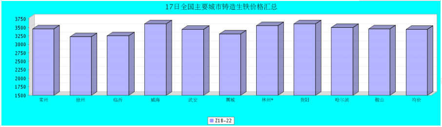 | 铸造生铁 | 常州 | 徐州 | 临沂 | 威海 | 武安 | 翼城 | 林州* | 贵阳 | 哈尔滨 | 鞍山 | 均价 |